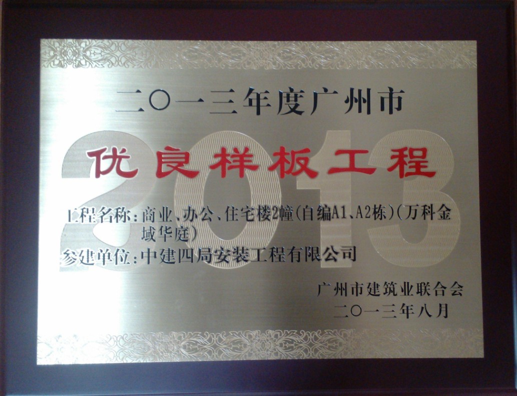 近日,南方分公司广州同福西万科项目(万科金域华庭)经广州市建筑业联合会评选,从众多参评单位中脱颖而出,被评为“2013年度广州市优良样板工程”。