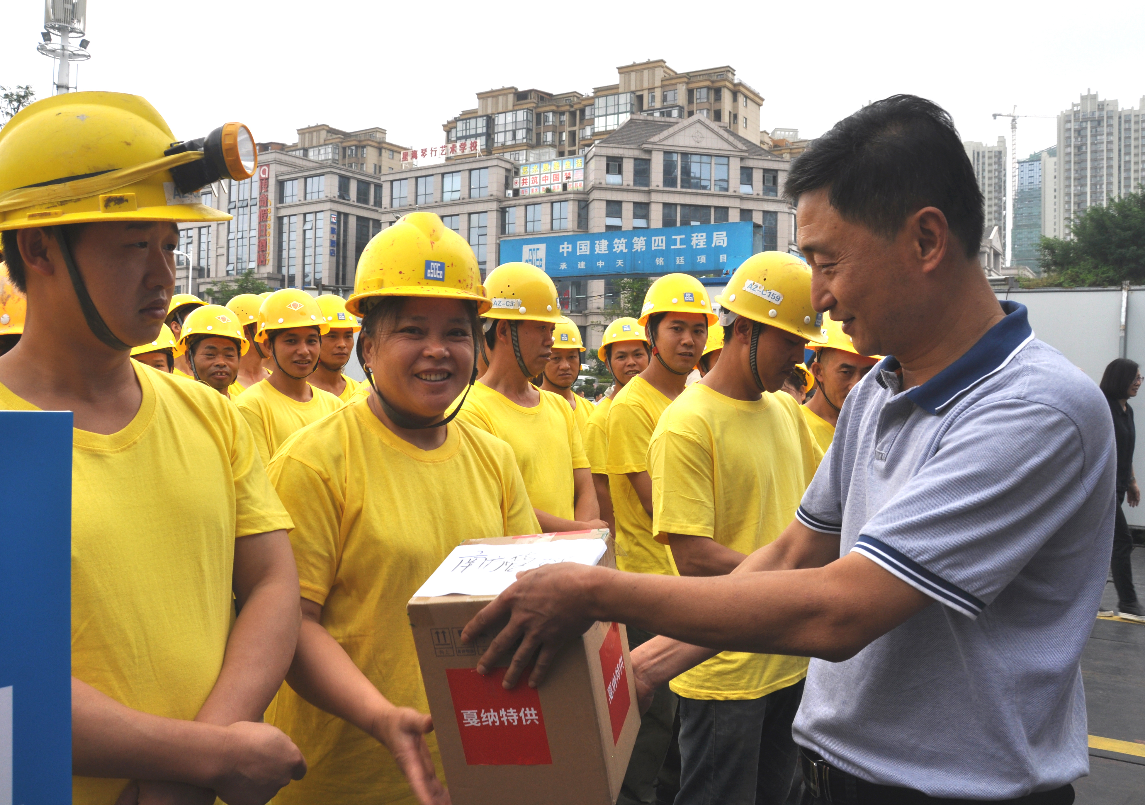 首先,孟主席一行看望慰问了盛夏仍坚守岗位的189名项目部员工、1058名农民工,送去了洗发水、毛巾、洗衣液、肥皂、矿泉水等慰问品,并嘱咐大家要注意防暑、劳逸结合,安全生产始终放第一。