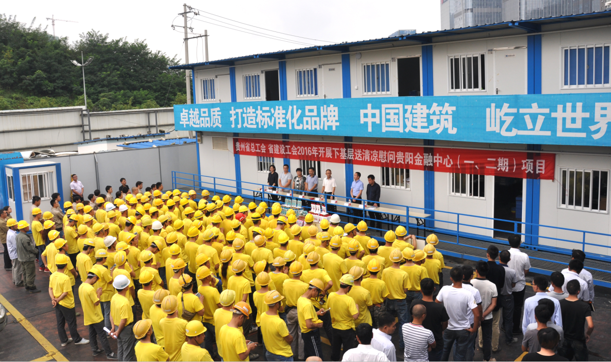 8月16日,贵州省建设工会孟日光主席、女工主任周晓芸一行深入安装公司金融中心项目开展“送清凉”活动,中建四局党委副书记、工会主席陈天雪、局黔副总经理兼工会委员会主任袁辉、工会委员会副主任秦远韬、安装公司工会主席罗帮萍、安装公司贵州分公司纪委书记杨道川等全程陪同。